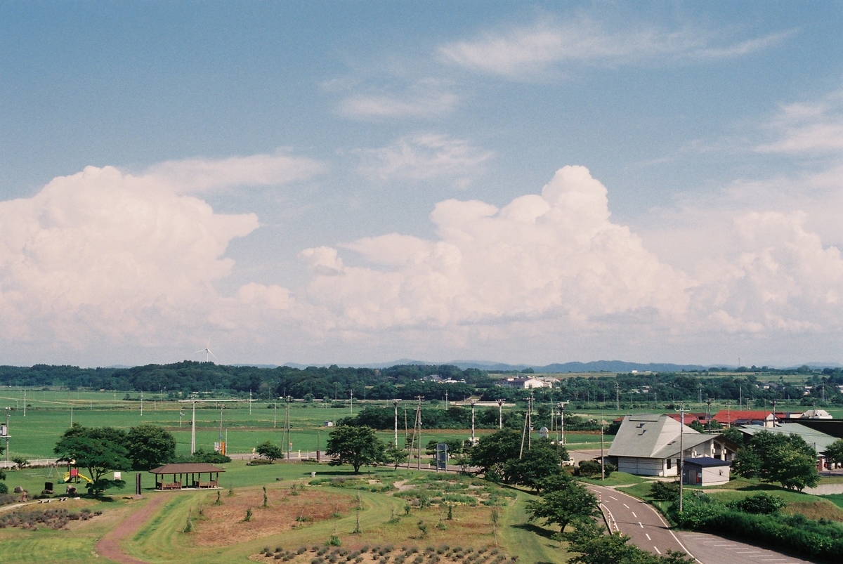 国道101号線沿いにある、道の駅みねはまから白神山地の方向を撮った写真。今回の24枚の中で1番のお気に入りかも。一番夏って感じがする。