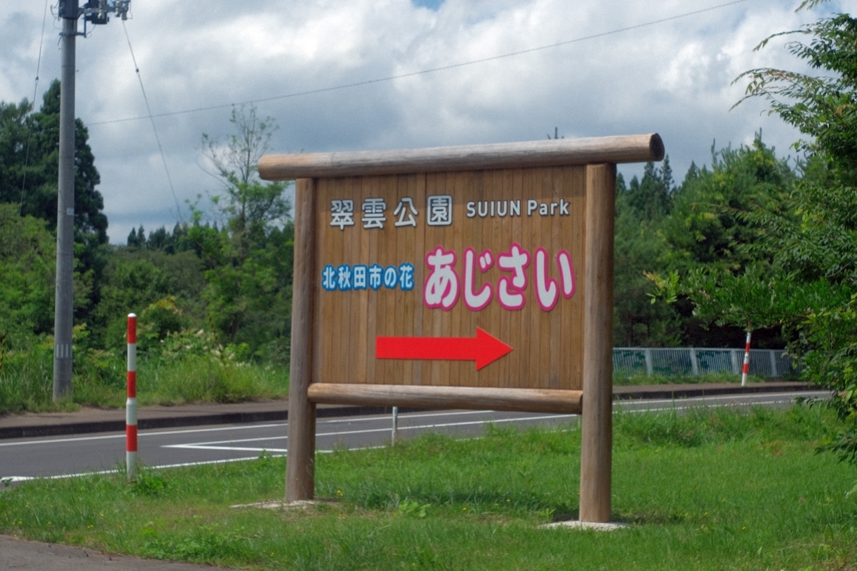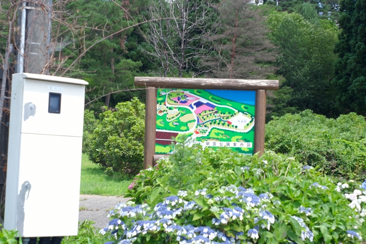 ナビで阿仁スキー場へのルートを確認していると、道の駅かみこあにの近くに翠雲公園という場所を見つけたのでちょっと寄り道。ネットで確認してみると紫陽花が植えられているらしい。
