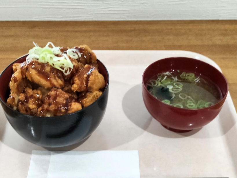 お昼はからあげ丼と、サ]ービスしてつけてくれたお味噌汁。書いてて気がついたけどこの写真手振れしちゃってる。恥ずかしい。