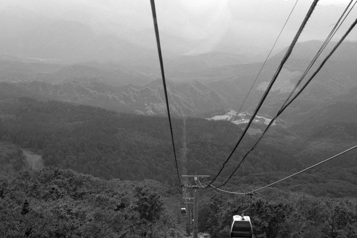 ゴンドラはあまり広くない。あと、ポールを通過するとき少しガタガタ音が鳴るからちょっと不安になるかも? けど、山の上に向かうから眺めは結構良い。次の6枚はX-E4とElmar 5cmで撮影。